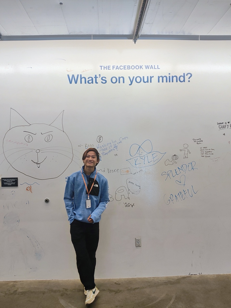 There is a famous market in Seattle called Pike Place Market. Interestingly, at the Meta office, they converted it into a playful phrase on the wall that says “Like Place Market,” with the Space Needle logo in between, referencing both the iconic Seattle market and the Facebook “Like” feature. Gotta thump you up for that; good one!